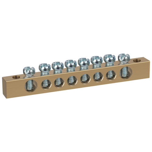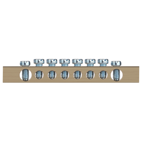Шины латунные PEN "земля-ноль" применяются для электрического и механического соединения нулевых, защитных и фазных проводников в электрических щитах и распределительных устройствах. Изделия выполняются из латуни соответствующего сечения с отверстиями обладающими винтовыми зажимами для подключения проводников.