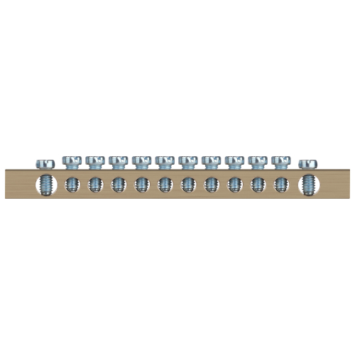 Шины латунные PEN "земля-ноль" применяются для электрического и механического соединения нулевых, защитных и фазных проводников в электрических щитах и распределительных устройствах. Изделия выполняются из латуни соответствующего сечения с отверстиями обладающими винтовыми зажимами для подключения проводников.