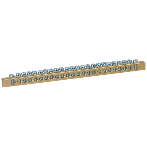 Шины латунные PEN "земля-ноль" применяются для электрического и механического соединения нулевых, защитных и фазных проводников в электрических щитах и распределительных устройствах. Изделия выполняются из латуни соответствующего сечения с отверстиями обладающими винтовыми зажимами для подключения проводников.