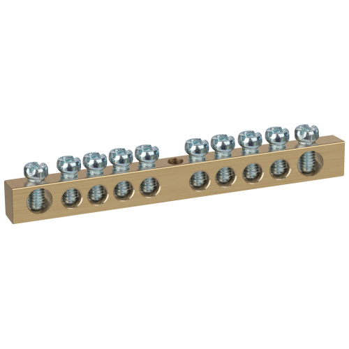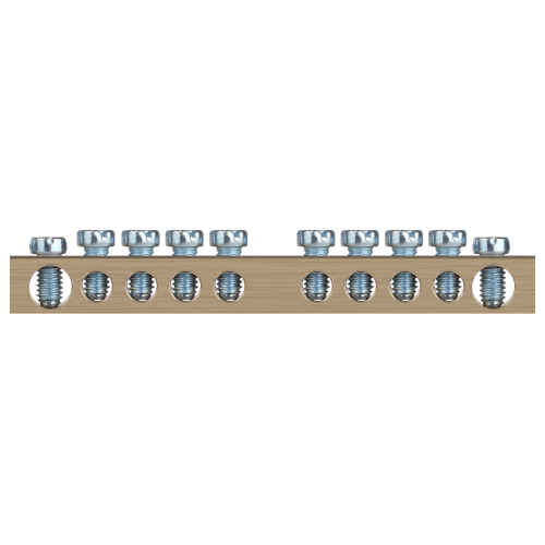 Шины латунные PEN "земля-ноль" применяются для электрического и механического соединения нулевых, защитных и фазных проводников в электрических щитах и распределительных устройствах. Изделия выполняются из латуни соответствующего сечения с отверстиями обладающими винтовыми зажимами для подключения проводников.