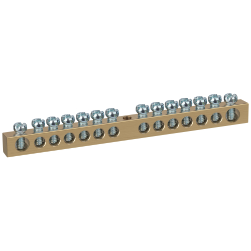Шины латунные PEN "земля-ноль" применяются для электрического и механического соединения нулевых, защитных и фазных проводников в электрических щитах и распределительных устройствах. Изделия выполняются из латуни соответствующего сечения с отверстиями обладающими винтовыми зажимами для подключения проводников.
