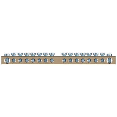 Шины латунные PEN "земля-ноль" применяются для электрического и механического соединения нулевых, защитных и фазных проводников в электрических щитах и распределительных устройствах. Изделия выполняются из латуни соответствующего сечения с отверстиями обладающими винтовыми зажимами для подключения проводников.