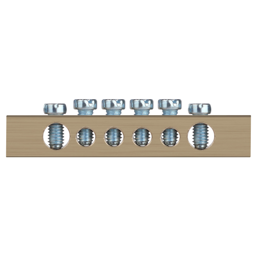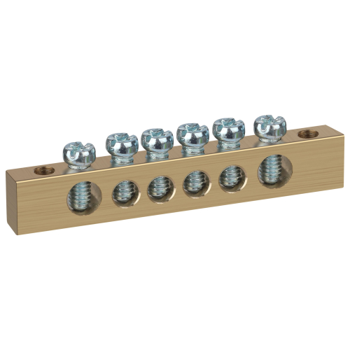 Шины латунные PEN "земля-ноль" применяются для электрического и механического соединения нулевых, защитных и фазных проводников в электрических щитах и распределительных устройствах. Изделия выполняются из латуни соответствующего сечения с отверстиями обладающими винтовыми зажимами для подключения проводников.