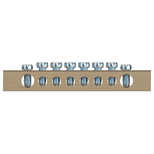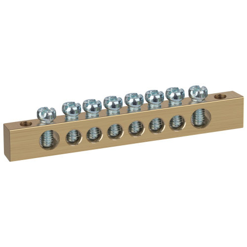 Шины латунные PEN "земля-ноль" применяются для электрического и механического соединения нулевых, защитных и фазных проводников в электрических щитах и распределительных устройствах. Изделия выполняются из латуни соответствующего сечения с отверстиями обладающими винтовыми зажимами для подключения проводников.