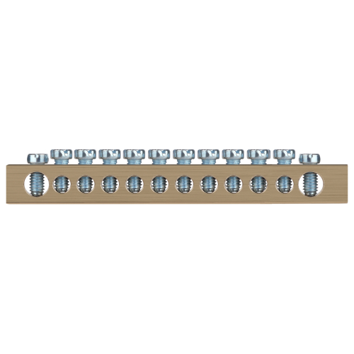 Шины латунные PEN "земля-ноль" применяются для электрического и механического соединения нулевых, защитных и фазных проводников в электрических щитах и распределительных устройствах. Изделия выполняются из латуни соответствующего сечения с отверстиями обладающими винтовыми зажимами для подключения проводников.