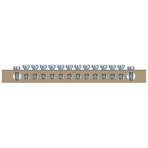 Шины латунные PEN "земля-ноль" применяются для электрического и механического соединения нулевых, защитных и фазных проводников в электрических щитах и распределительных устройствах. Изделия выполняются из латуни соответствующего сечения с отверстиями обладающими винтовыми зажимами для подключения проводников.