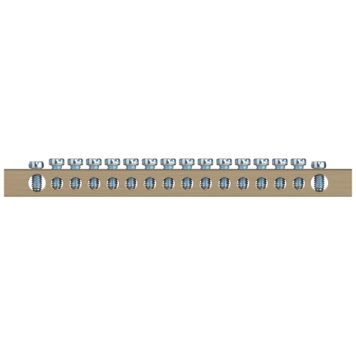 Шины латунные PEN "земля-ноль" применяются для электрического и механического соединения нулевых, защитных и фазных проводников в электрических щитах и распределительных устройствах. Изделия выполняются из латуни соответствующего сечения с отверстиями обладающими винтовыми зажимами для подключения проводников.