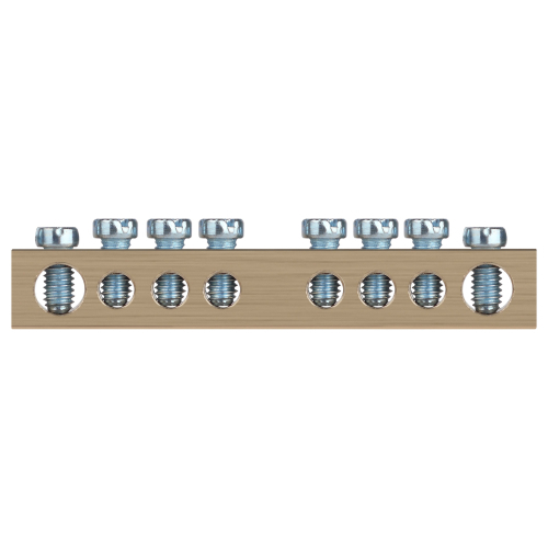 Шины латунные PEN "земля-ноль" применяются для электрического и механического соединения нулевых, защитных и фазных проводников в электрических щитах и распределительных устройствах. Изделия выполняются из латуни соответствующего сечения с отверстиями обладающими винтовыми зажимами для подключения проводников.