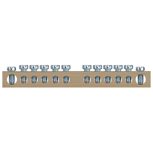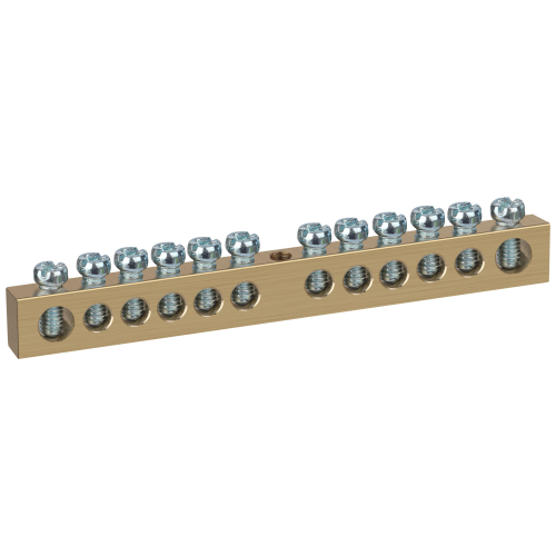 Шины латунные PEN "земля-ноль" применяются для электрического и механического соединения нулевых, защитных и фазных проводников в электрических щитах и распределительных устройствах. Изделия выполняются из латуни соответствующего сечения с отверстиями обладающими винтовыми зажимами для подключения проводников.