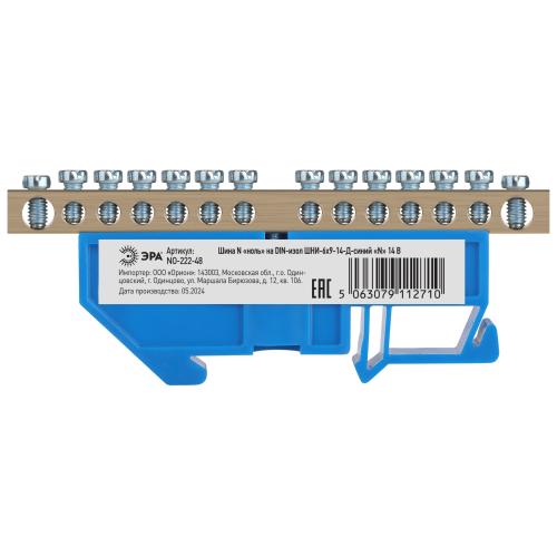 Шины латунные N «нейтраль» 6×9 на DIN-изоляторе применяются для электрического и механического соединения нулевых, защитных и фазных проводников в электрических щитах и распределительных устройствах. Изделия выполняются из латуни соответствующего сечения с отверстиями, обладающими винтовыми зажимами для подключения проводников. Шины установлены на пластиковый изолятор, изготовленный из полипропилена с добавлением антипиренов. Конструкция изолятора обладает креплением для установки на DIN-рейку. Цвет изолятора (синий/жёлтый) позволяет быстро и правильно идентифицировать тип подключаемого проводника.