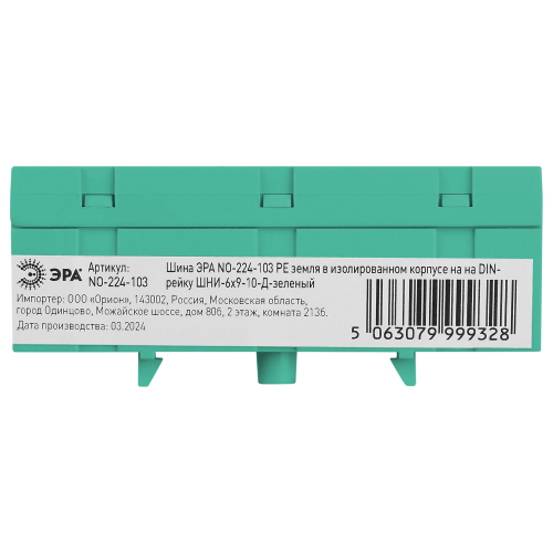 Изделие выполнено из латунной шины сечением 6×9 мм установленной в пластиковый изолятор зелёного цвета.