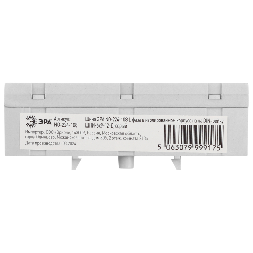 Изделие выполнено из латунной шины сечением 6×9 мм установленной в пластиковый изолятор серого цвета.