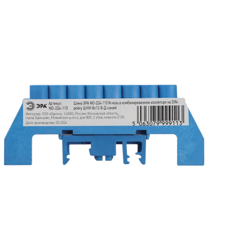 Изделие выполнено из латунной шины сечением 8×12 мм установленной в пластиковый комбинированный изолятор синего цвета.