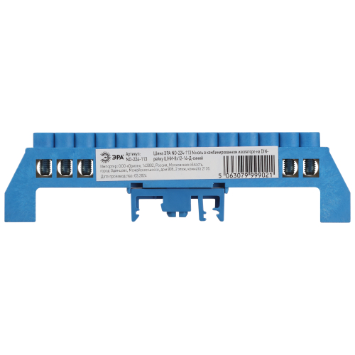 Изделие выполнено из латунной шины сечением 8×12 мм установленной в пластиковый комбинированный изолятор синего цвета.