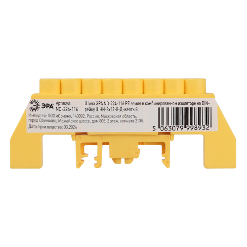 Изделие выполнено из латунной шины сечением 8×12 мм установленной в пластиковый комбинированный изолятор жёлтого цвета.