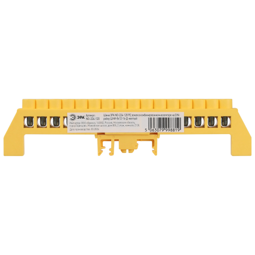 Изделие выполнено из латунной шины сечением 8×12 мм установленной в пластиковый комбинированный изолятор жёлтого цвета.