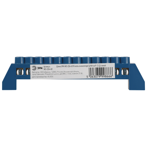 Изделие выполнено из латунной шины сечением 6×9 мм установленной в пластиковый изолятор синего цвета.
