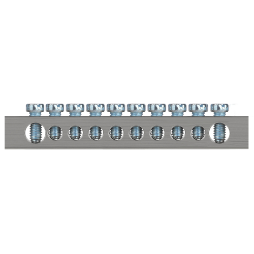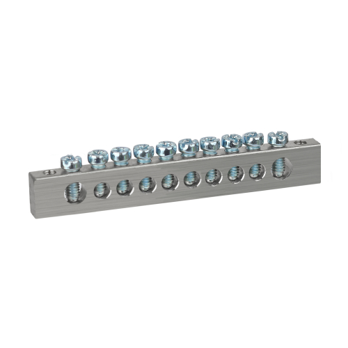 Изделие выполнено из латунной шины сечением 6×9 мм с никелированным покрытием для высокой коррозионной стойкости материала и позволяет одновременно подключать проводники из меди и алюминиевого сплава серии 8000.
