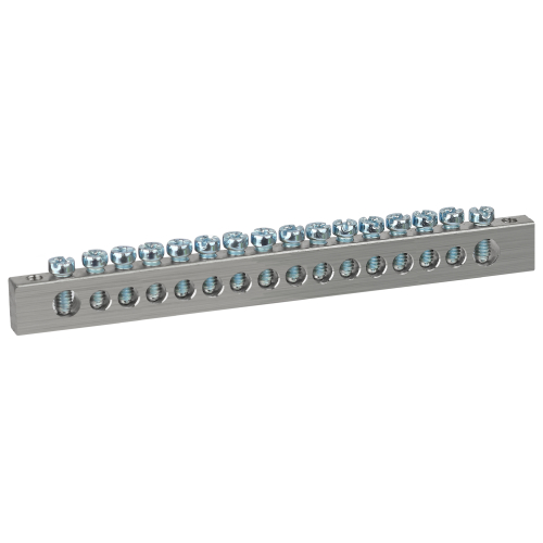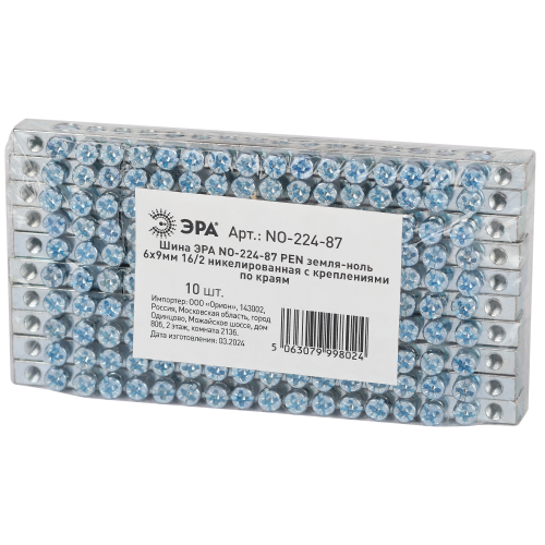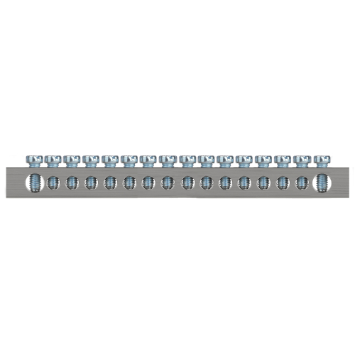 Изделие выполнено из латунной шины сечением 6×9 мм с никелированным покрытием для высокой коррозионной стойкости материала и позволяет одновременно подключать проводники из меди и алюминиевого сплава серии 8000.