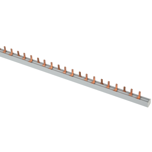 Шины соединительные "Гребёнки" представляют собой токоведущие пластины, выполненные из меди, закрепленные в корпусе из диэлектрического материала. Применяются при внутрищитовом монтаже для подачи питания определённых полюсов и фаз к модульным аппаратам защиты сети (автоматические выключатели, диф. автоматы, ВДТ/УЗО, выключатели нагрузки) путём их параллельного соединения.