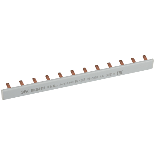 Шины соединительные "Гребёнки" представляют собой токоведущие пластины, выполненные из меди, закрепленные в корпусе из диэлектрического материала. Применяются при внутрищитовом монтаже для подачи питания определённых полюсов и фаз к модульным аппаратам защиты сети (автоматические выключатели, диф. автоматы, ВДТ/УЗО, выключатели нагрузки) путём их параллельного соединения.