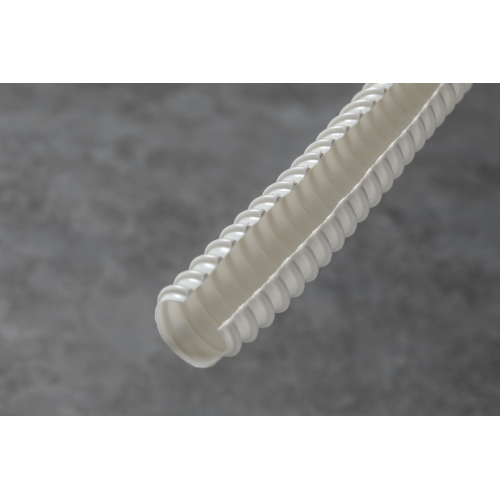 Шланг очень легкий и гибкий, внешняя поверхность волнистая, а внутренняя гладкая.