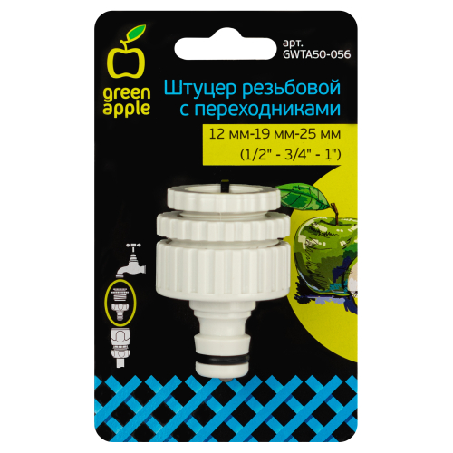 Штуцер Green Apple GWTA50-056 необходим для подключения шлангов к водопроводным кранам, у которых имеет внешняя резьба. Он может пригодиться на даче, при работе с огородом, для полива сада или приусадебного участка, а также во многих других ситуациях. Резьбовой штуцер "Green Apple" изготовлен из высококачественного прочного ABS-пластика, нейтральный цвет детали будет смотреться гармонично в любой композиции. В комплекте - 3 переходника разного диаметра. Диаметр: 1/2", 3/4", 1". С садовыми аксессуарами Green Apple работа в саду всегда в удовольствие!