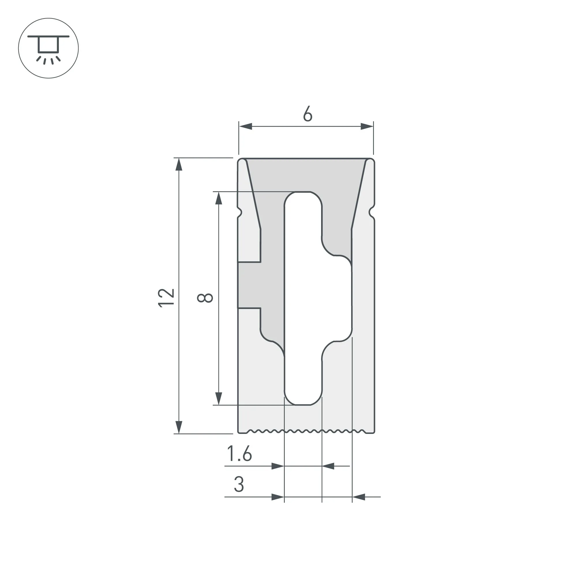 Цельнолитой силиконовый гибкий профиль белого цвета с УФ-защитой. Габаритные размеры профиля составляют 5000 мм в длину, 6 мм в ширину и 12 мм в высоту. Горизонтальный изгиб SIDE, минимальный радиус изгиба 30 мм. Угол излучения 120°. Для удобства установки ленты по всей длине профиля протянута нить. Площадка для установки светодиодных лент позволяет использовать ленту шириной от 6 до 8 мм, высотой до 2,9 мм и мощностью до 10 Вт/м. Это обеспечивает гибкость в выборе светодиодных лент и создает потрясающие световые решения. Для установки во влажных помещениях необходима герметизация при помощи двухкомпонентного эпоксидного герметика. Класс пылевлагозащиты – IP65 (при соблюдении технологии герметизации). Этот продукт представляет отличное решение для создания современных световых проектов и обеспечивает надежную и стильную основу для установки светодиодов.