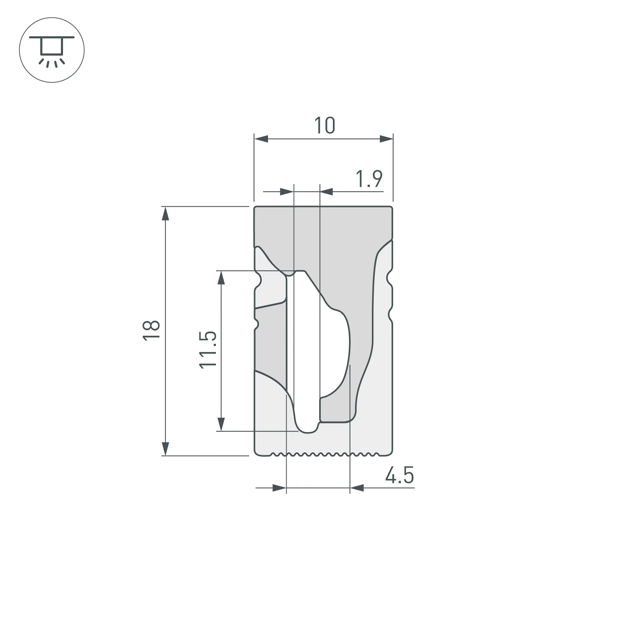 Цельнолитой силиконовый гибкий профиль белого цвета с УФ-защитой. Габаритные размеры профиля составляют 50000 мм в длину, 10 мм в ширину и 18 мм в высоту. Горизонтальный изгиб SIDE, минимальный радиус изгиба 30 мм. Угол излучения 125°. Для удобства установки ленты по всей длине профиля протянута нить. Площадка для установки светодиодных лент позволяет использовать ленту шириной от 8 до 10 мм, высотой до 3,5 мм и мощностью до 10 Вт/м. Это обеспечивает гибкость в выборе светодиодных лент и создает потрясающие световые решения. Для установки во влажных помещениях необходима герметизация при помощи двухкомпонентного эпоксидного герметика. Класс пылевлагозащиты – IP65 (при соблюдении технологии герметизации). Этот продукт представляет отличное решение для создания современных световых проектов и обеспечивает надежную и стильную основу для установки светодиодов.