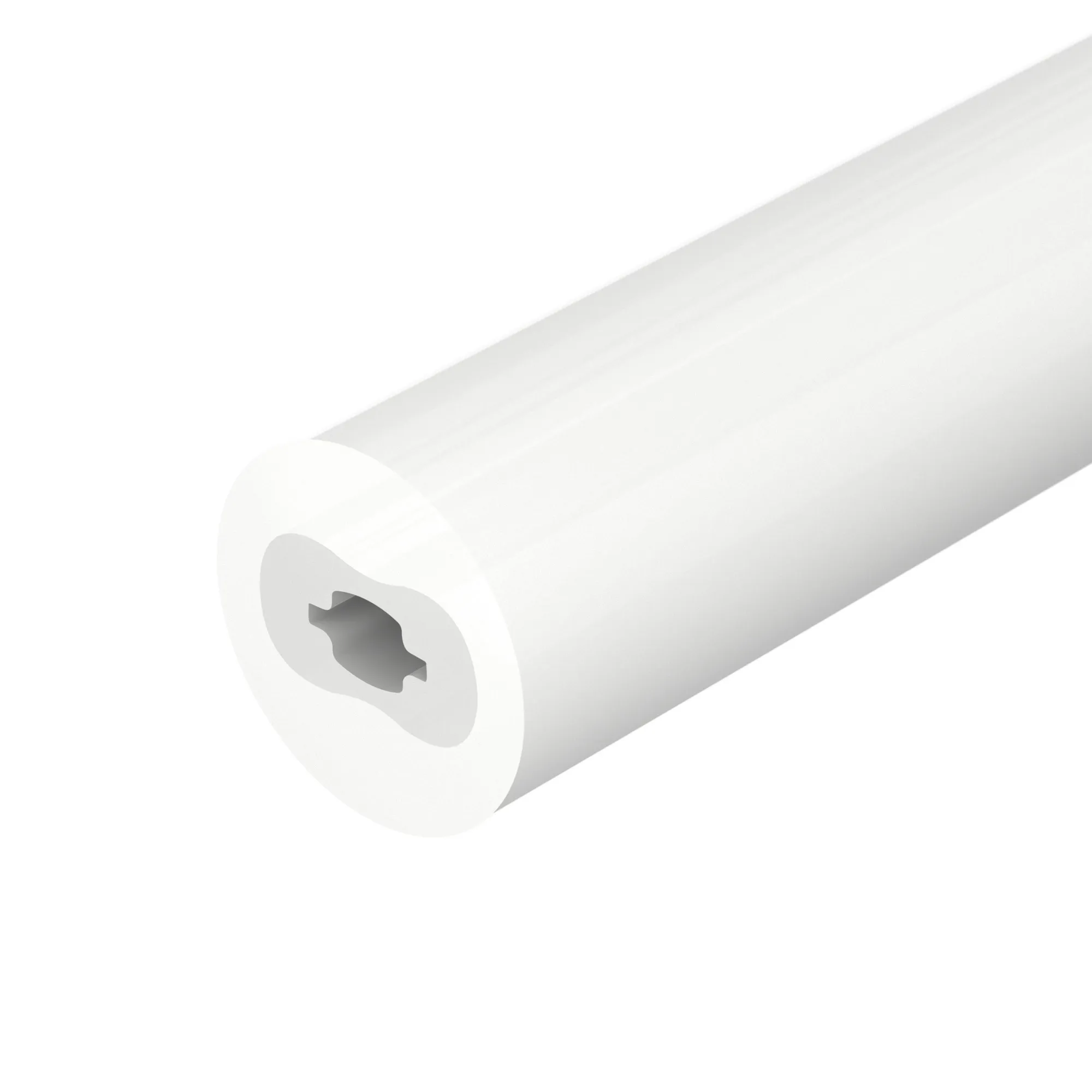 Цельнолитой силиконовый гибкий профиль белого цвета. Габаритные размеры профиля составляют 5000 мм в длину, диаметр 22 мм. Минимальный радиус изгиба в плоскости изгиба ленты 60 мм. Для удобства установки ленты по всей длине профиля протянуты две нити. Для получения эффекта свечения 360° требуется установка двух светодиодных лент шириной от 6 до 8 мм, высотой до 2,9 мм и мощностью до 16 Вт/м при двойной склейке. Это обеспечивает гибкость в выборе светодиодных лент и создает потрясающие световые решения. Для установки во влажных помещениях необходима герметизация при помощи двухкомпонентного эпоксидного герметика. Класс пылевлагозащиты – IP65 (при соблюдении технологии герметизации).