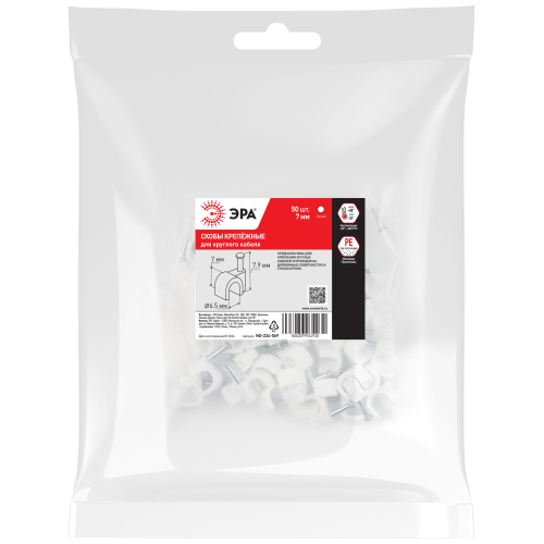 Скобы крепёжные пластиковые ЭРА предназначены для быстрого и надежного крепления круглых и плоских кабелей.