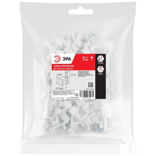 Скобы крепёжные пластиковые ЭРА предназначены для быстрого и надежного крепления круглых и плоских кабелей.