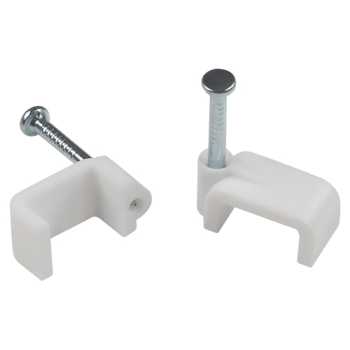 В ассортименте 2 типа изделий: для круглого кабеля и для плоского кабеля. Поставляется в комплекте с уже вставленным гвоздем.