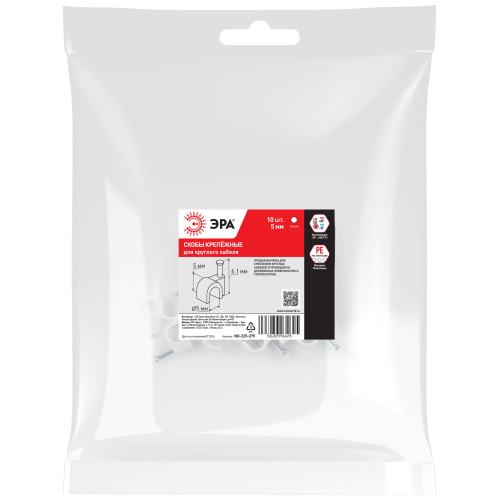 Скобы крепёжные пластиковые ЭРА предназначены для быстрого и надежного крепления круглых и плоских кабелей.