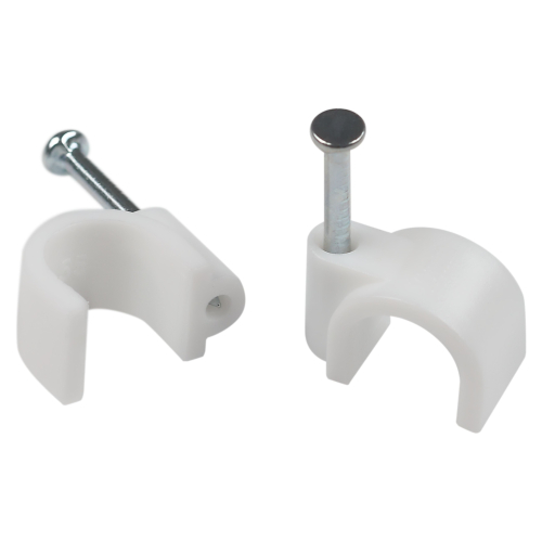 В ассортименте 2 типа изделий: для круглого кабеля и для плоского кабеля. Поставляется в комплекте с уже вставленным гвоздем.
