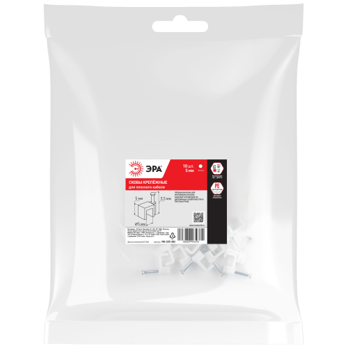 Скобы крепёжные пластиковые ЭРА предназначены для быстрого и надежного крепления круглых и плоских кабелей.