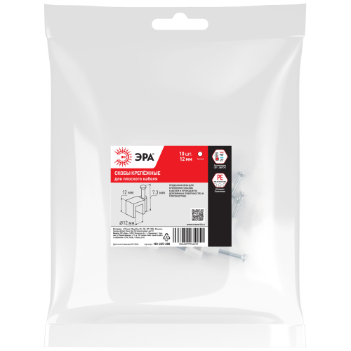 Скобы крепёжные пластиковые ЭРА предназначены для быстрого и надежного крепления круглых и плоских кабелей.