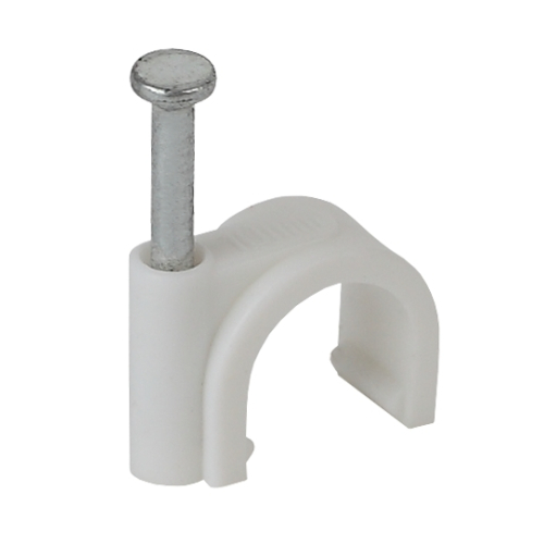 Предназначены для крепления круглых и плоских кабелей. Изготовлены из гибкого негорючего ударопрочного полипропилена, гвоздь - закаленная оцинкованная сталь.