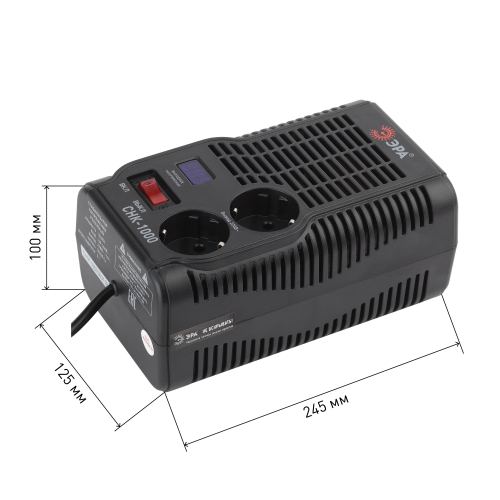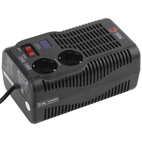 Стабилизатор напряжения компактный однофазный релейный цвет чёрный модели СНК-1000. Номинальные характеристики (полная мощность / диапазон входного напряжения): 1000ВА 160-260В . Предназначен для поддержания стабильного однофазного напряжения питания бытовых приборов при отклонениях значений сетевого напряжения. Выбирая стабилизатор, нужно знать, какое электрооборудование будет к нему подключено: один прибор, группу приборов (наиболее чувствительных к перепадам напряжения в сети) либо вся домашняя (офисная) техника. Затем необходимо рассчитать суммарную мощность защищаемых электропотребителей. Основное условие выбора мощности стабилизатора напряжения - суммарная мощность подключаемой к нему нагрузки не должна превышать полной мощности самого стабилизатора (в противном случае автоматика стабилизатора будет их просто отключать). Точные значения мощности можно узнать из паспортных данных Вашего конкретного потребителя. Стабилизатор подбирается с запасом в 25-30% к его полной мощности.