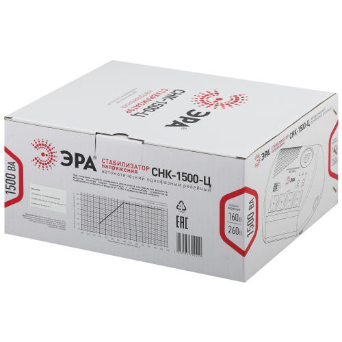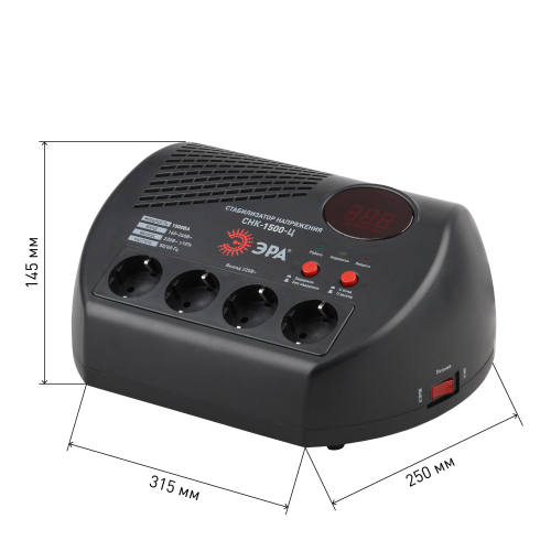 Стабилизатор напряжения компактный однофазный релейный цвет чёрный модели СНК-1500-Ц. Номинальные характеристики (полная мощность / диапазон входного напряжения): 1500ВА 160-260В . Предназначен для поддержания стабильного однофазного напряжения питания бытовых приборов при отклонениях значений сетевого напряжения. Выбирая стабилизатор, нужно знать, какое электрооборудование будет к нему подключено: один прибор, группу приборов (наиболее чувствительных к перепадам напряжения в сети) либо вся домашняя (офисная) техника. Затем необходимо рассчитать суммарную мощность защищаемых электропотребителей. Основное условие выбора мощности стабилизатора напряжения - суммарная мощность подключаемой к нему нагрузки не должна превышать полной мощности самого стабилизатора (в противном случае автоматика стабилизатора будет их просто отключать). Точные значения мощности можно узнать из паспортных данных Вашего конкретного потребителя. Стабилизатор подбирается с запасом в 25-30% к его полной мощности.