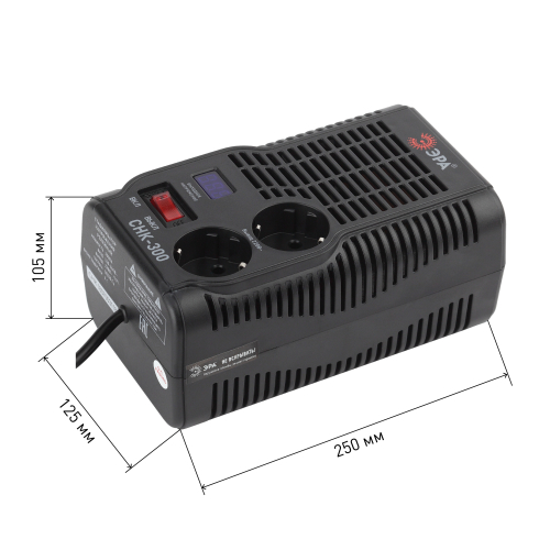 Стабилизатор напряжения компактный однофазный релейный цвет чёрный модели СНК-300. Номинальные характеристики (полная мощность / диапазон входного напряжения): 300ВА 160-260В . Предназначен для поддержания стабильного однофазного напряжения питания бытовых приборов при отклонениях значений сетевого напряжения. Выбирая стабилизатор, нужно знать, какое электрооборудование будет к нему подключено: один прибор, группу приборов (наиболее чувствительных к перепадам напряжения в сети) либо вся домашняя (офисная) техника. Затем необходимо рассчитать суммарную мощность защищаемых электропотребителей. Основное условие выбора мощности стабилизатора напряжения - суммарная мощность подключаемой к нему нагрузки не должна превышать полной мощности самого стабилизатора (в противном случае автоматика стабилизатора будет их просто отключать). Точные значения мощности можно узнать из паспортных данных Вашего конкретного потребителя. Стабилизатор подбирается с запасом в 25-30% к его полной мощности.