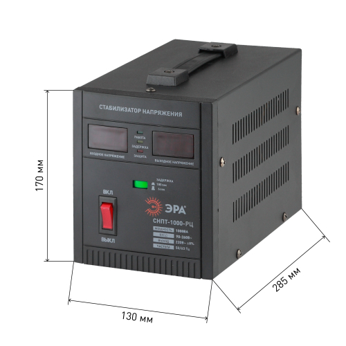 Стабилизатор напряжения переносной /напольный однофазный релейный цвет чёрный модели СНПТ-1000-РЦ. Номинальные характеристики (полная мощность / диапазон входного напряжения): 1000ВА 90-260В . Предназначен для поддержания стабильного однофазного напряжения питания бытовых приборов при отклонениях значений сетевого напряжения. Выбирая стабилизатор, нужно знать, какое электрооборудование будет к нему подключено: один прибор, группу приборов (наиболее чувствительных к перепадам напряжения в сети) либо вся домашняя (офисная) техника. Затем необходимо рассчитать суммарную мощность защищаемых электропотребителей. Основное условие выбора мощности стабилизатора напряжения - суммарная мощность подключаемой к нему нагрузки не должна превышать полной мощности самого стабилизатора (в противном случае автоматика стабилизатора будет их просто отключать). Точные значения мощности можно узнать из паспортных данных Вашего конкретного потребителя. Стабилизатор подбирается с запасом в 25-30% к его полной мощности.