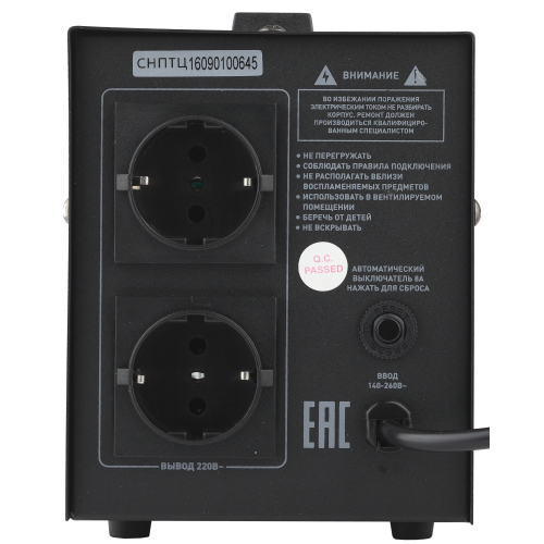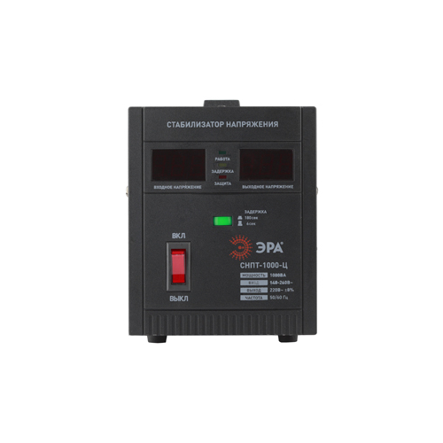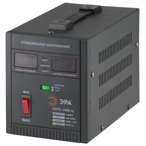 Стабилизатор напряжения переносной /напольный однофазный релейный цвет чёрный модели СНПТ-1000-Ц. Номинальные характеристики (полная мощность / диапазон входного напряжения): 1000ВА 140-260В . Предназначен для поддержания стабильного однофазного напряжения питания бытовых приборов при отклонениях значений сетевого напряжения. Выбирая стабилизатор, нужно знать, какое электрооборудование будет к нему подключено: один прибор, группу приборов либо вся домашняя (офисная) техника. Затем необходимо рассчитать суммарную мощность защищаемых электропотребителей. Основное условие выбора мощности стабилизатора напряжения - суммарная мощность подключаемой к нему нагрузки не должна превышать полной мощности самого стабилизатора (в противном случае автоматика стабилизатора будет их просто отключать). Точные значения мощности можно узнать из паспортных данных Вашего конкретного потребителя. Стабилизатор подбирается с запасом в 25-30% к его полной мощности.