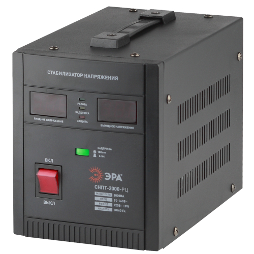 Стабилизатор напряжения переносной /напольный однофазный релейный цвет чёрный модели СНПТ-2000-РЦ. Номинальные характеристики (полная мощность / диапазон входного напряжения): 2000ВА. Предназначен для поддержания стабильного однофазного напряжения питания бытовых приборов при отклонениях значений сетевого напряжения. Выбирая стабилизатор, нужно знать, какое электрооборудование будет к нему подключено: один прибор, группу приборов (наиболее чувствительных к перепадам напряжения в сети) либо вся домашняя (офисная) техника. Затем необходимо рассчитать суммарную мощность защищаемых электропотребителей. Основное условие выбора мощности стабилизатора напряжения - суммарная мощность подключаемой к нему нагрузки не должна превышать полной мощности самого стабилизатора (в противном случае автоматика стабилизатора будет их просто отключать). Точные значения мощности можно узнать из паспортных данных Вашего конкретного потребителя. Стабилизатор подбирается с запасом в 25-30% к его полной мощности.