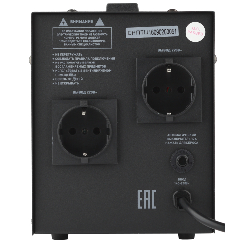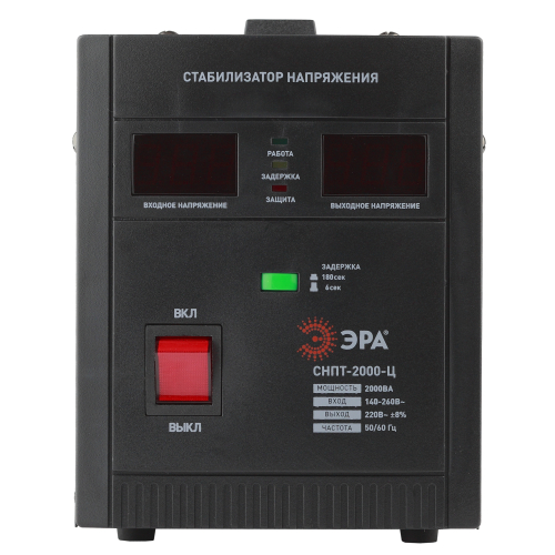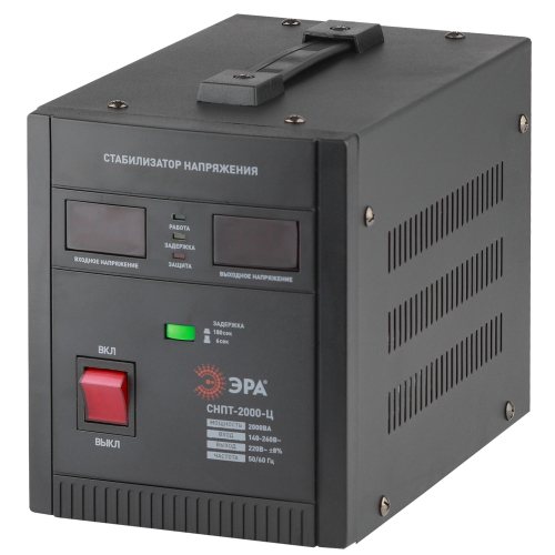 Стабилизатор напряжения переносной /напольный однофазный релейный цвет чёрный модели СНПТ-2000-Ц. Номинальные характеристики (полная мощность / диапазон входного напряжения): 2000ВА 140-260В . Предназначен для поддержания стабильного однофазного напряжения питания бытовых приборов при отклонениях значений сетевого напряжения. Выбирая стабилизатор, нужно знать, какое электрооборудование будет к нему подключено: один прибор, группу приборов либо вся домашняя (офисная) техника. Затем необходимо рассчитать суммарную мощность защищаемых электропотребителей. Основное условие выбора мощности стабилизатора напряжения - суммарная мощность подключаемой к нему нагрузки не должна превышать полной мощности самого стабилизатора (в противном случае автоматика стабилизатора будет их просто отключать). Точные значения мощности можно узнать из паспортных данных Вашего конкретного потребителя. Стабилизатор подбирается с запасом в 25-30% к его полной мощности.