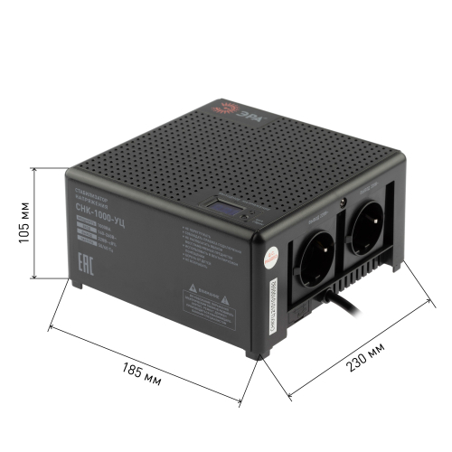 Стабилизатор напряжения компактный однофазный релейный цвет чёрный модели CНК-1000-УЦ. Номинальные характеристики (полная мощность / диапазон входного напряжения): 1000ВА 140-260В . Предназначен для поддержания стабильного однофазного напряжения питания бытовых приборов при отклонениях значений сетевого напряжения. Выбирая стабилизатор, нужно знать, какое электрооборудование будет к нему подключено: один прибор, группу приборов (наиболее чувствительных к перепадам напряжения в сети) либо вся домашняя (офисная) техника. Затем необходимо рассчитать суммарную мощность защищаемых электропотребителей. Основное условие выбора мощности стабилизатора напряжения - суммарная мощность подключаемой к нему нагрузки не должна превышать полной мощности самого стабилизатора (в противном случае автоматика стабилизатора будет их просто отключать). Точные значения мощности можно узнать из паспортных данных Вашего конкретного потребителя. Стабилизатор подбирается с запасом в 25-30% к его полной мощности.