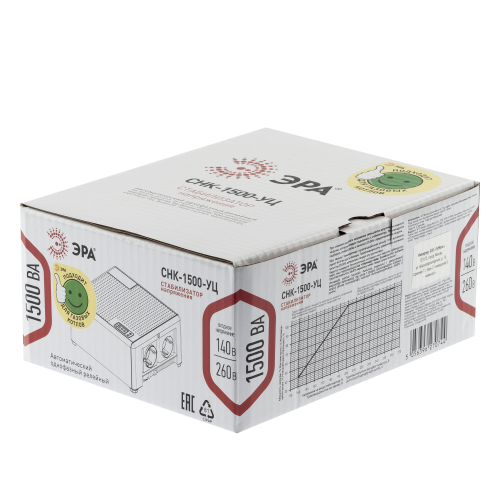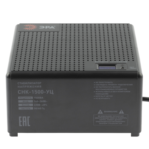 Стабилизатор напряжения компактный однофазный релейный цвет чёрный модели CНК-1500-УЦ. Номинальные характеристики (полная мощность / диапазон входного напряжения): 1500ВА 140-260В . Предназначен для поддержания стабильного однофазного напряжения питания бытовых приборов при отклонениях значений сетевого напряжения. Выбирая стабилизатор, нужно знать, какое электрооборудование будет к нему подключено: один прибор, группу приборов (наиболее чувствительных к перепадам напряжения в сети) либо вся домашняя (офисная) техника. Затем необходимо рассчитать суммарную мощность защищаемых электропотребителей. Основное условие выбора мощности стабилизатора напряжения - суммарная мощность подключаемой к нему нагрузки не должна превышать полной мощности самого стабилизатора (в противном случае автоматика стабилизатора будет их просто отключать). Точные значения мощности можно узнать из паспортных данных Вашего конкретного потребителя. Стабилизатор подбирается с запасом в 25-30% к его полной мощности.