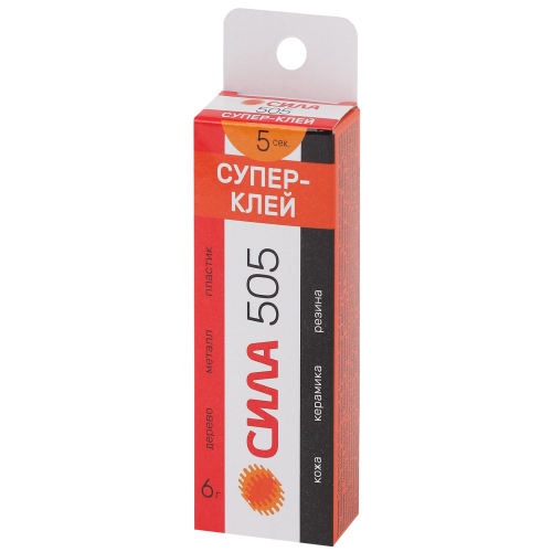 Популярный супер-клей в пластиковой тубе объёмом 6 гр. Супер-клей СИЛА 505 – проверенный клей с отличными свойствами. Обладая высокой концентрацией цианакрилата и хорошей текучестью, он особенно эффективен для склеивания металлических деталей. Успешно применяется для пластика, дерева, кожи, резины, керамики, фарфора. Экономично расходуется и застывает за 5 секунд. Формат тубы с удлиненным носиком обеспечивает удобство при нанесении супер-клея. Увеличенный объём супер-клея позволяет склеить детали большей площади или осуществить несколько разных склеиваний. Каждый тюбик супер-клея упакован в картонную коробку с европодвесом для удобного размещения на крючках торговых стеллажей.