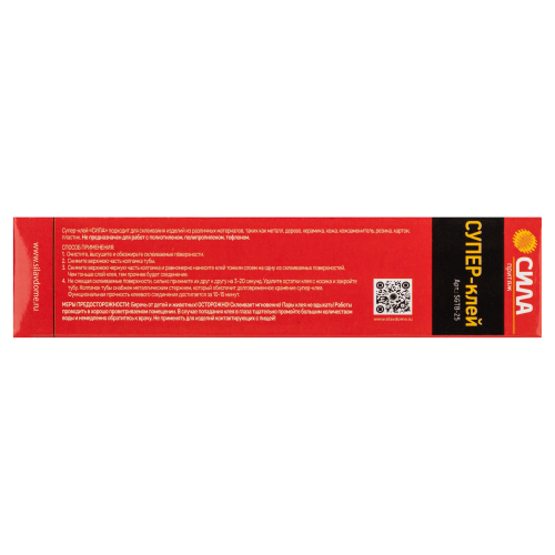 Супер-клей СИЛА, идеально подходит для быстрого и эффективного ремонта различных предметов мебели, интерьера и т.д. Накрепко схватывает дерево, резину, керамику, фарфор и пластик, при этом супер клеи экономично расходуются и высыхают за несколько секунд.
