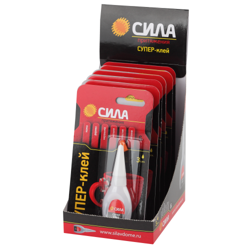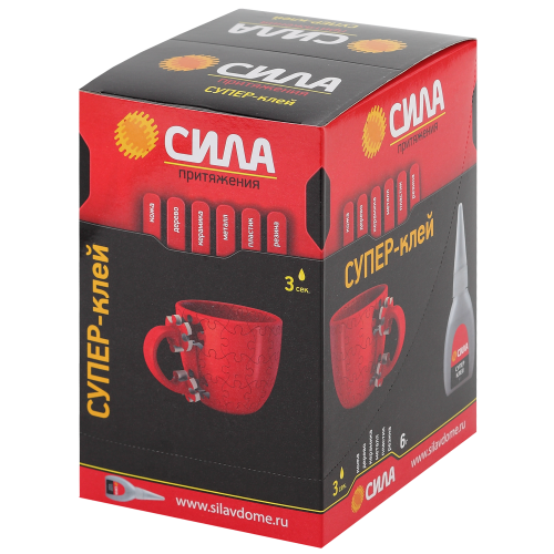 Супер-клей СИЛА, идеально подходит для быстрого и эффективного ремонта различных предметов мебели, интерьера и т.д. Накрепко схватывает дерево, резину, стекло, фарфор и пластик, при этом супер клеи экономично расходуются и высыхают за несколько секунд.